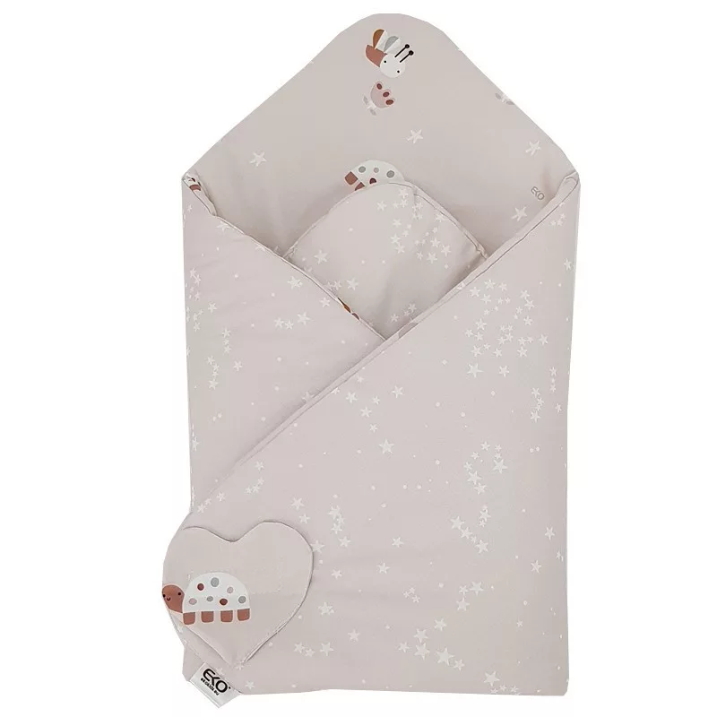 Ez a gyönyörű EKO csomagolókendő ideális választás újszülöttek számára. Kétoldalas kivitelének köszönhetően mindig variálhatod a megjelenést: egyik oldalon bájos méhecskék, a másikon finom csillagminták díszítik a kendőt.