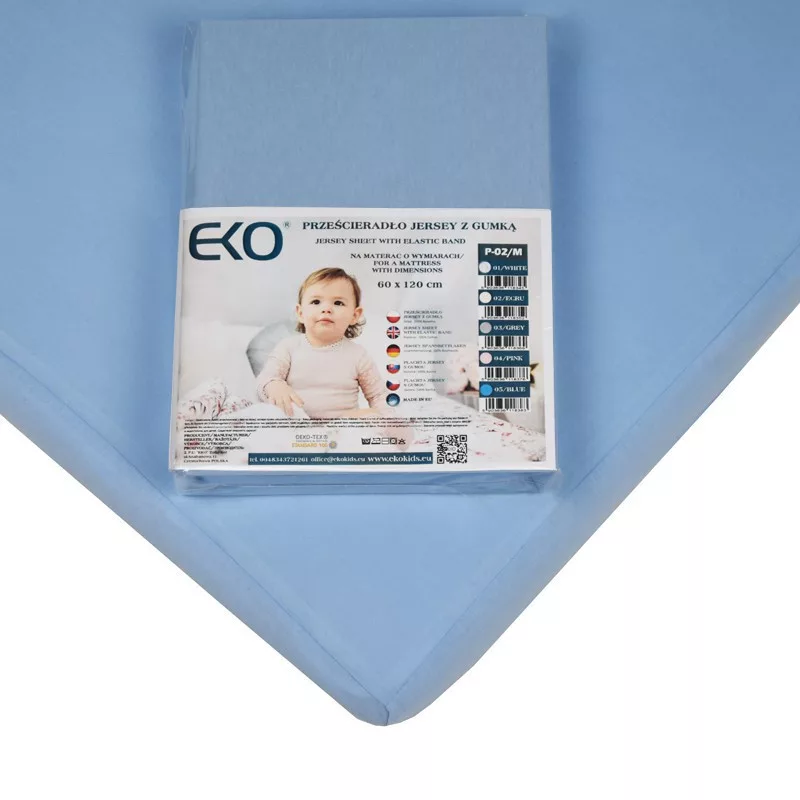 EKO Gumis lepedő, Jersey, kék, 120x60 cm