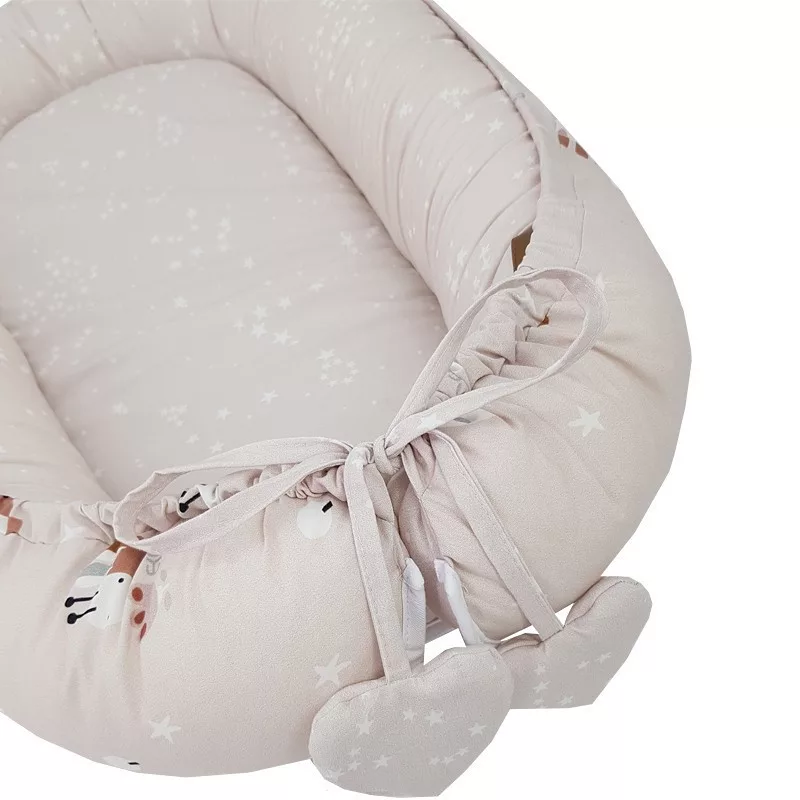 Egy biztonságos, puha kis kuckó, ahol a babád nyugodtan pihenhet – bárhol. Az EKO kétoldalas babafészek praktikus és stílusos választás: egyik oldalon vidám méhecskés, másikon bájos csillagos minta, így hangulattól vagy enteriőrtől függően bármikor megfordíthatod.