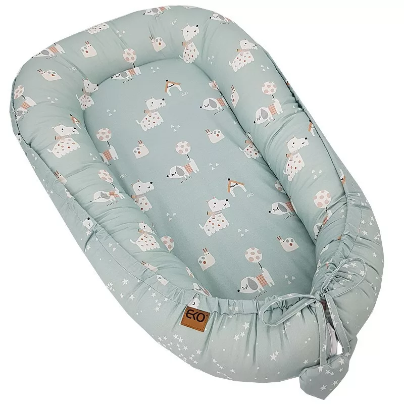 EKO Kétszínű pamut babafészek Dogs Stars 90x60 cm - Mint