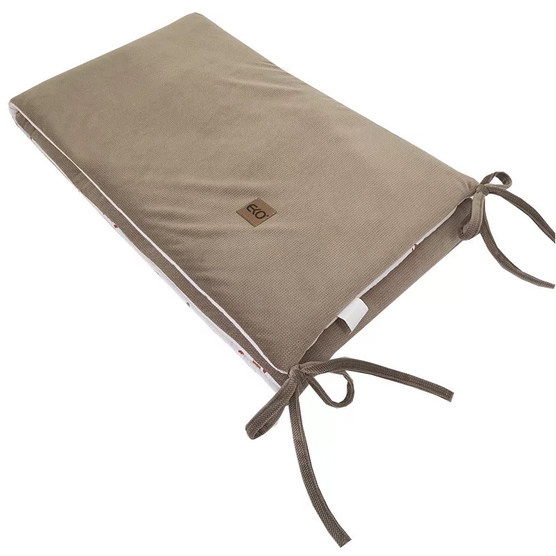 Az EKO kiságyvédő tökéletes választás, ha szeretnél praktikus, mégis dekoratív védelmet a baba kiságyába. A bájos minta játékos és modern hangulatot visz a babaszobába, miközben a puha, hipoallergén töltet óvja a babát a rácsok közötti beütődésektől.