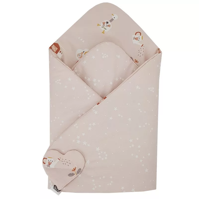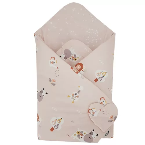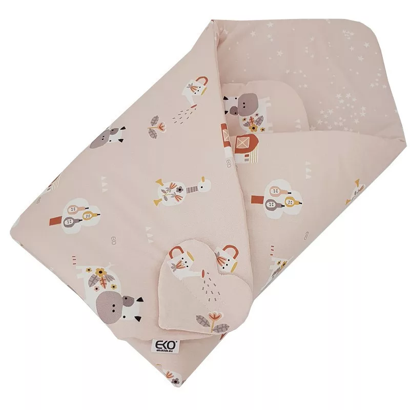 EKO takaró pamut kétoldalas My farm 75x75 cm - Powder pink