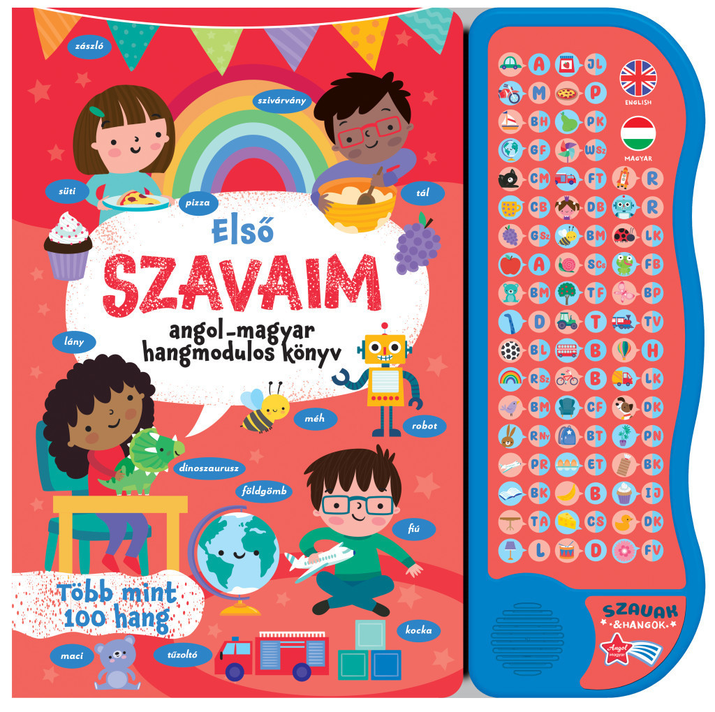 Fedezd fel a szavak világát játékos és interaktív módon! Az Első szavaim – Angol-magyar hangmodulos könyv tökéletes választás a legkisebbek számára, hogy megismerkedjenek a mindennapi tárgyak, ételek, állatok és közlekedési eszközök neveivel magyarul és angolul is. A könyv segítségével a gyerekek nemcsak a képeken keresztül tanulhatják meg az új szavakat, hanem a hangmodul segítségével ki is ejthetik és hallás után is megtanulhatják azokat.