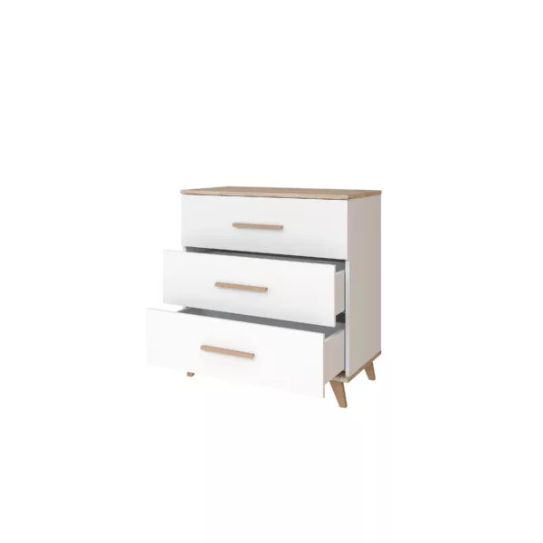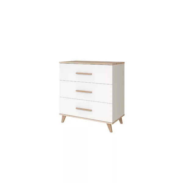 A komód négy karcsú lábon áll, a felületeket fahatású tető és alj rész keretezi, ami modern, mégis otthonos megjelenést biztosít. A hosszúkás fogantyúk játékos karaktert visznek az összképbe. A termék rendelkezik TÜV minősítéssel, így biztos lehetsz benne, hogy a leg- szigorúbb biztonsági és minőségi elvárásoknak is meg- felel – mert a babád biztonsága és kényelme mindig az első. Miért ajánljuk Neked és Babádnak? • 3db46literkapacitásúfiókvárja,hogydugigpakoldbabaholmikkal(tudjuk, nincs olyan, hogy „elég” hely)