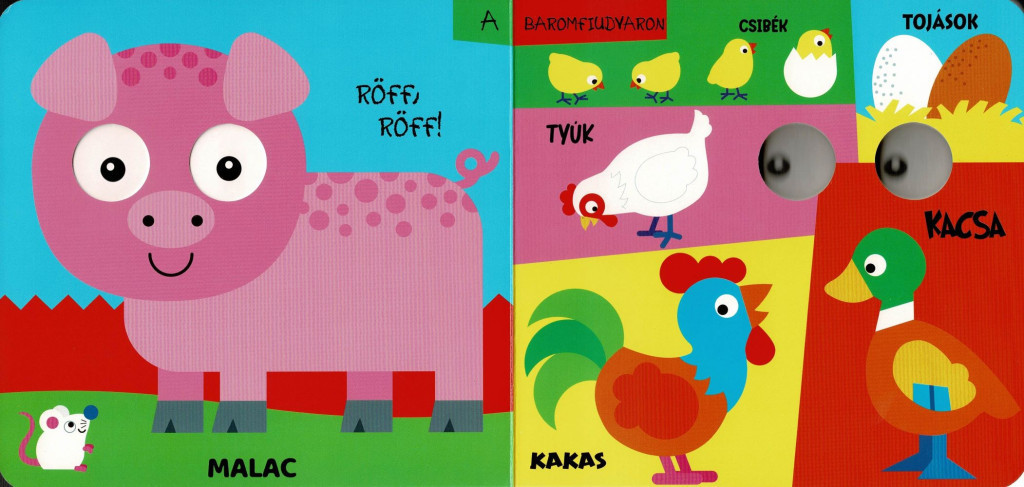 Ez a lapozó típusú könyv tökéletes választás első könyvnek, hiszen nemcsak a természet szépségeit mutatja be, hanem az interaktív elemekkel való játék által aktívan bevonja a gyerekeket az olvasás folyamatába. A forgatható szemek és az aranyos illusztrációk garantáltan lekötik a figyelmüket, miközben játékosan tanulhatnak a tanyasi élet mindennapjairól.