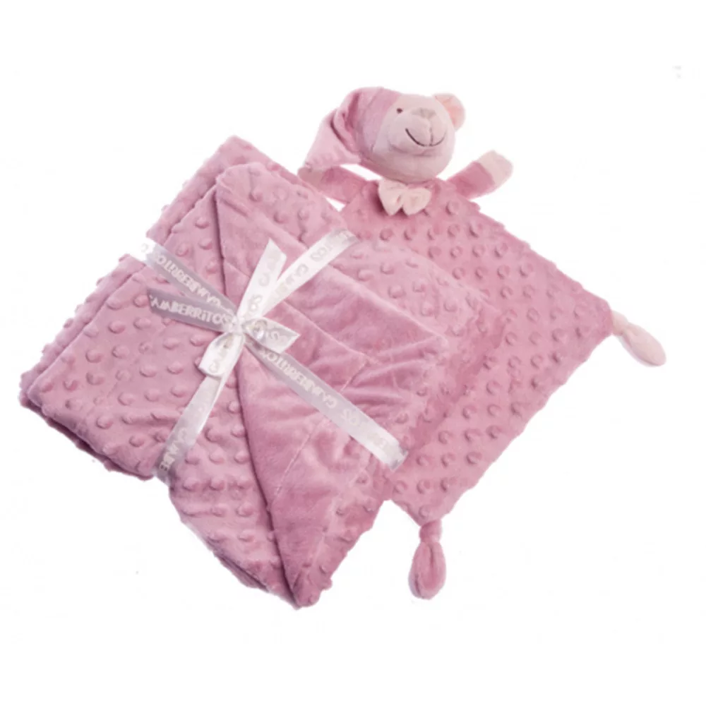 Gamberritos takaró plüss buborékos anyagú 80x110cm plüss szundikendővel maci - púderszínű