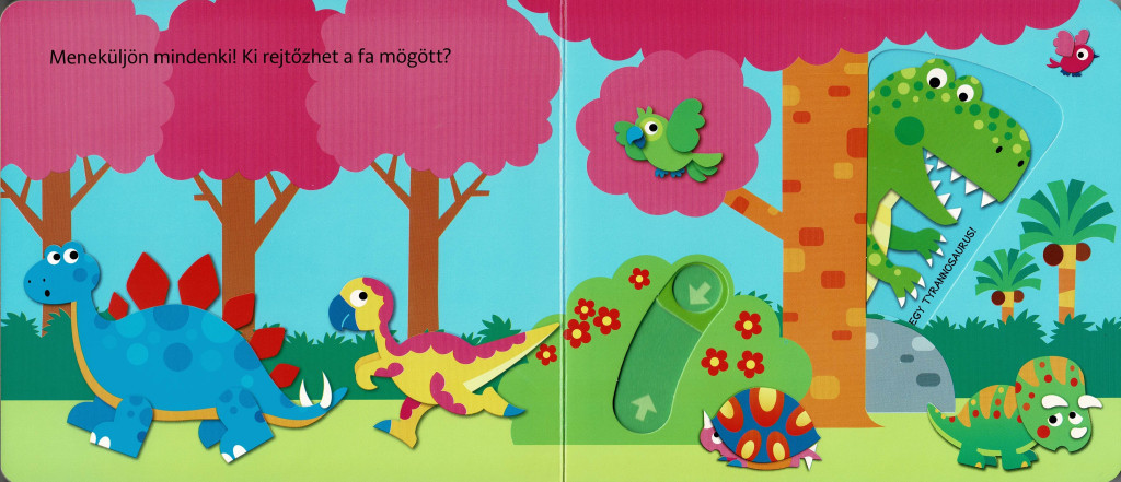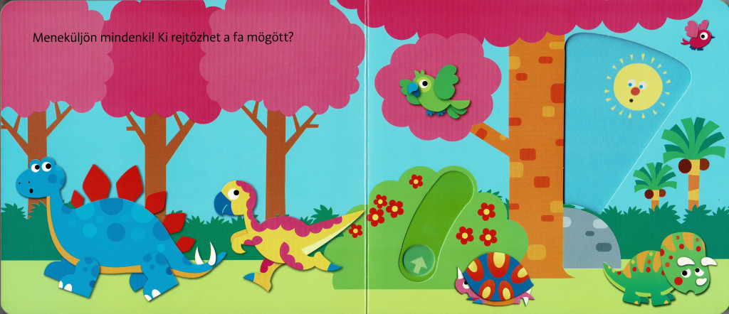 A Hová bújtam? Dinoszauruszok című lapozókönyv interaktív élménnyé varázsolja a dinoszauruszokkal való ismerkedést. A gyerekek játékosan fedezhetik fel, hogy ki bújt el a fa mögött vagy ki rejtőzik a sziklák mögött. Ez a lapozó nem csak szórakoztat, de fejleszti a kíváncsiságot és a megfigyelőképességet is.