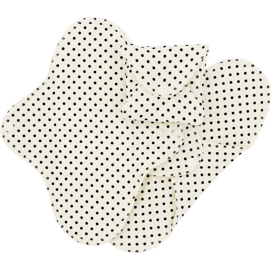 A menstruációs betét a szárnyakon lévő patentokkal záródik. A betétek anyaga 100% biopamut, így a puha anyag miatt kellemes viseletet biztosít ezeken a napokon. A betétek a megfelelő komfortérzet és a szivárgásmentesség érdekében PUL vízhatlan, légáteresztő réteggel vannak ellátva. A mosható betétek használatával nemcsak a saját komfortérzetedért, hanem a környezetedért is sokat tehetsz, az egyszer használatos műanyag termékek helyett válaszd a többször felhasználható, mosható alternatívákat.