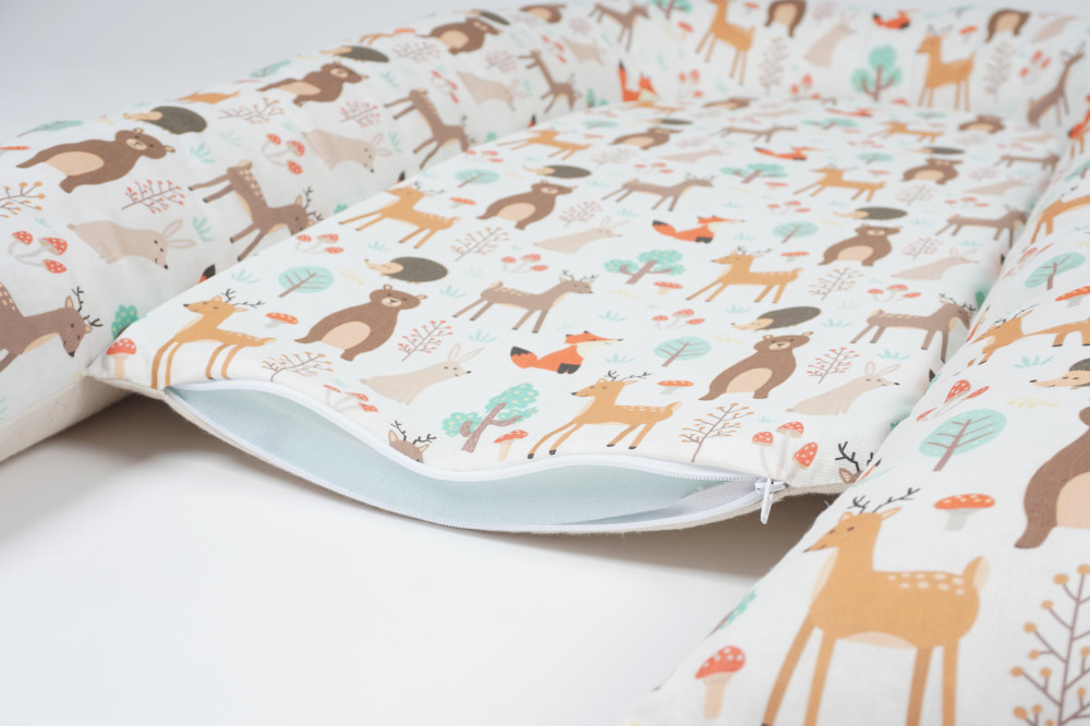 Strapabíró, vastag Oeko-Tex Class 1-es alsó pamutvászonnal és szintén rendkívül bababarát belső mintás, 100% pamut textillel ellátott, amelyek a szivacs kivételével 30 fokon moshatók.