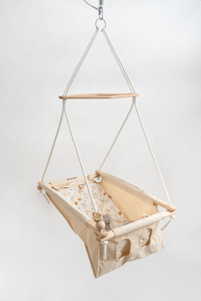 • Speciális beltéri hinta, amely rugóval kiegészíthető: Fekvő helyzetben pihenésre, Ülő helyzetben játékra, Rugóval nem csak oldalirányban, hanem függőlegesen is ringatható