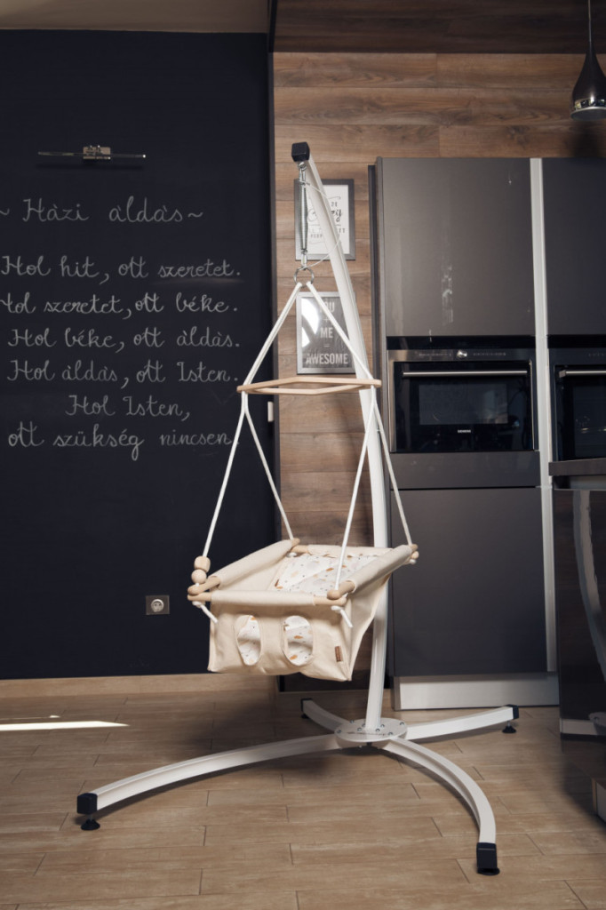 • A hinta finom mozgatása nyugtató hatású, segít a hasfájós vagy nyugtalan babák altatásában