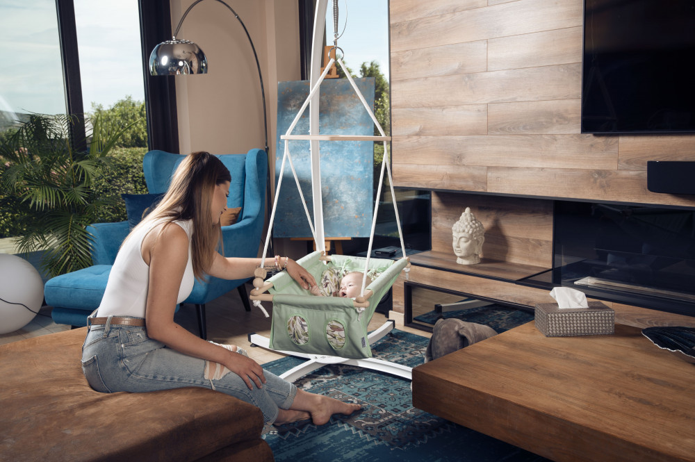 • A hinta finom mozgatása nyugtató hatású, segít a hasfájós vagy nyugtalan babák altatásában
