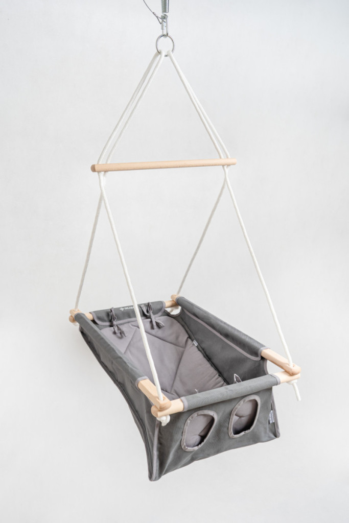 • Speciális beltéri hinta, amely rugóval kiegészíthető: Fekvő helyzetben pihenésre, Ülő helyzetben játékra, Rugóval nem csak oldalirányban, hanem függőlegesen is ringatható