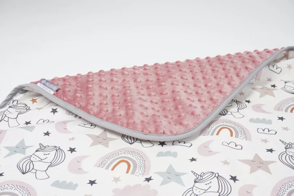 Kétoldalas, szuper puha, bélelt babatakaró otthoni alváshoz, utazáshoz, vagy akár játékszőnyegnek.