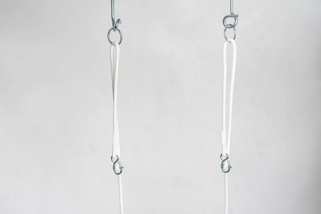 • 10 mm vastag, sima tapintású, strapabíró kötélzet fém karikákkal
