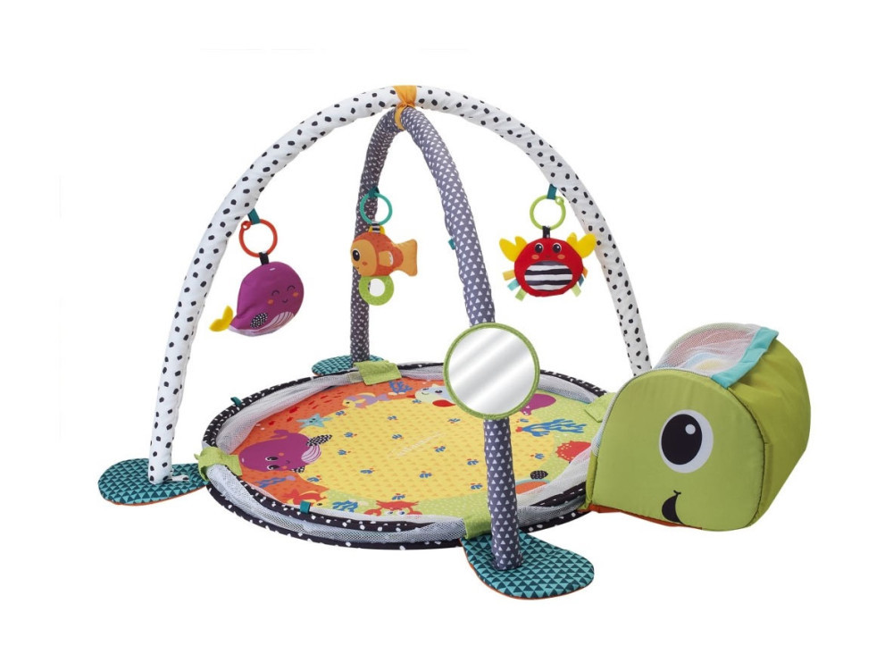 Nagyszerű fejlesztő játék és pihenőhely a babádnak ez a játékhíddal felszerelt játszószőnyeg.