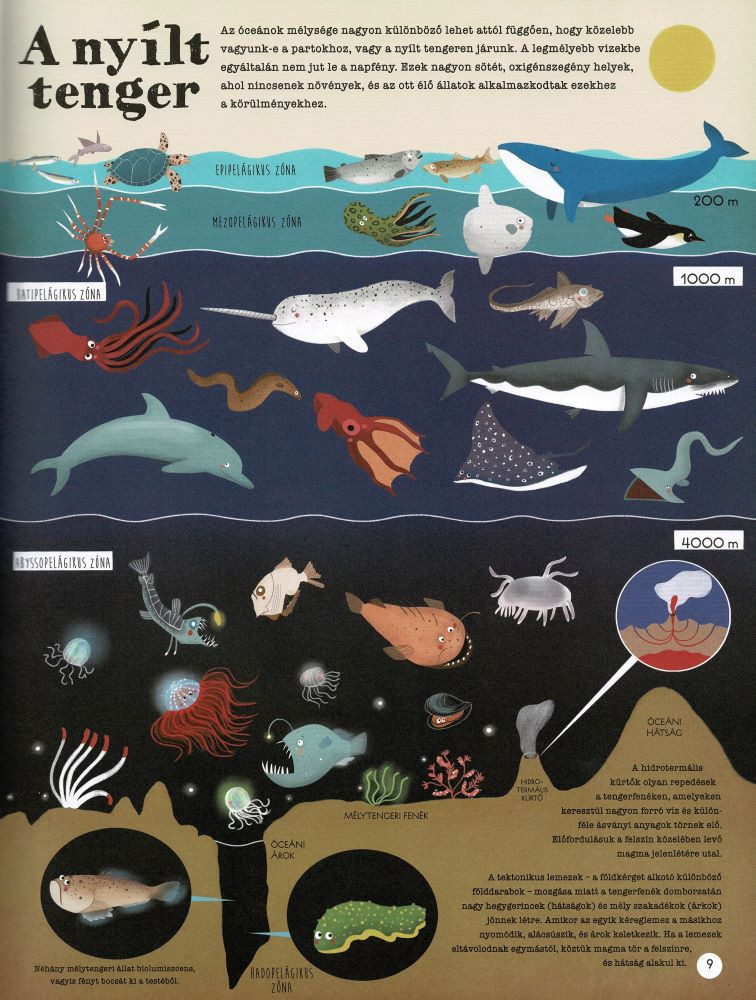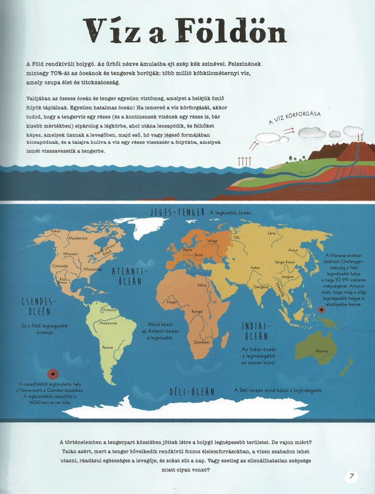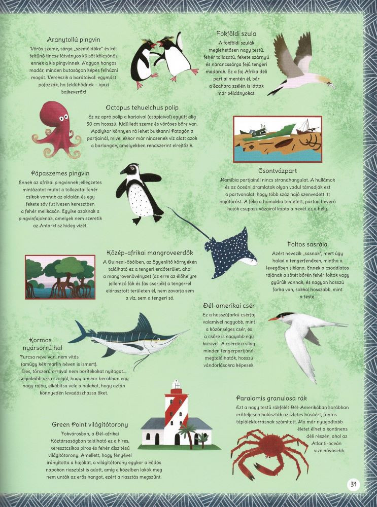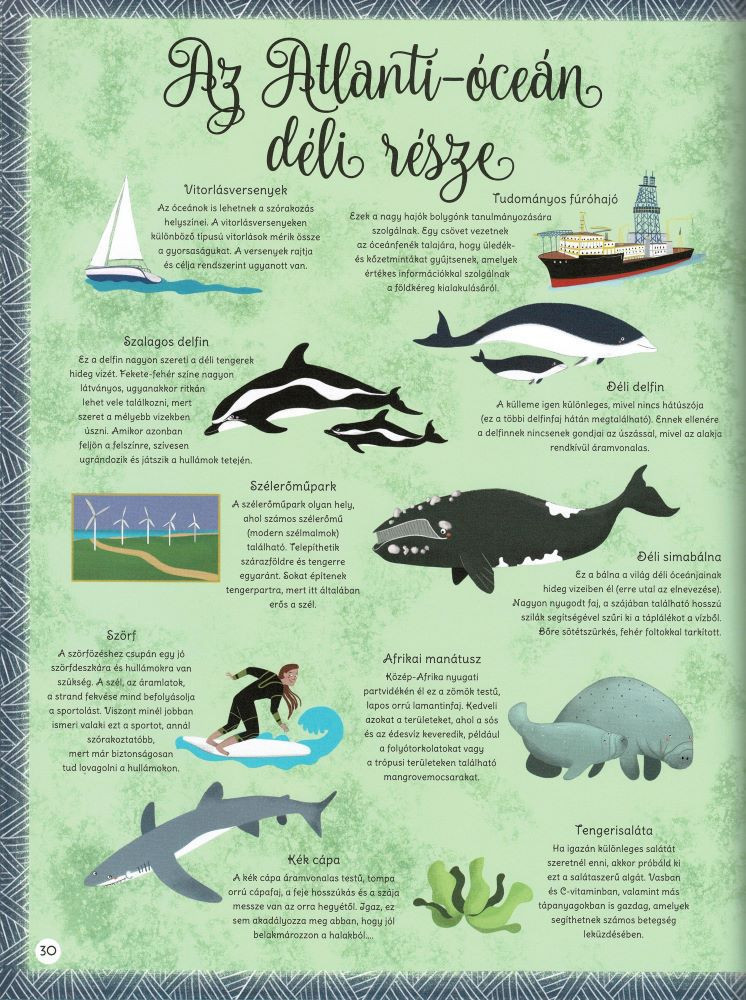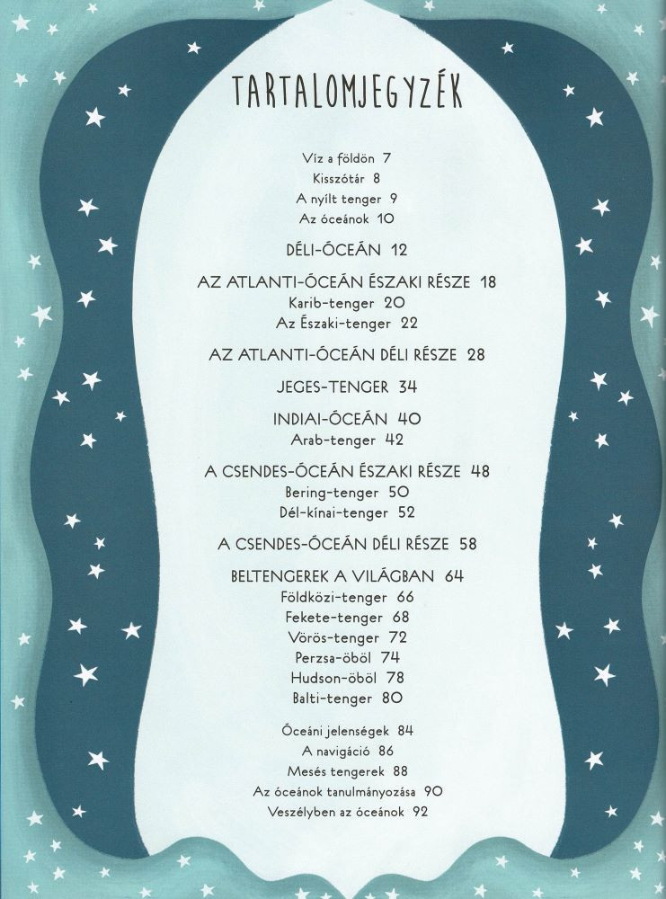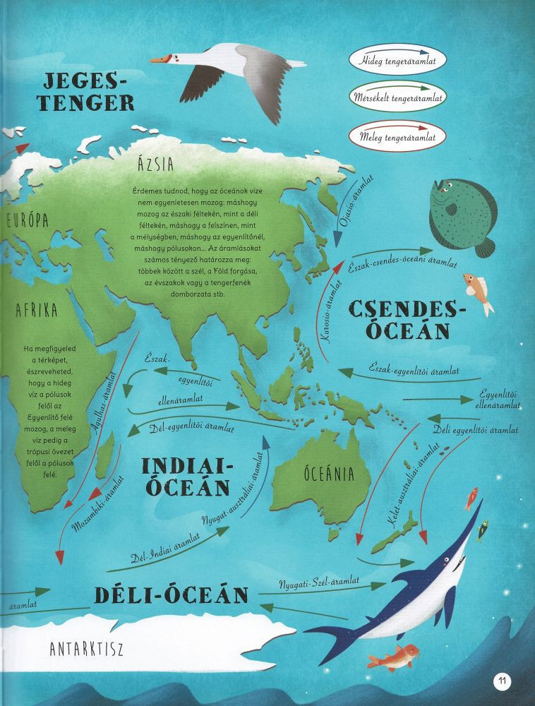 Nézd csak, mi minden él a tengerekben és az óceánokban! Utazásra hívunk a könyv lapjain az Északi-sarktól a meleg tengereken át, egészen a Déli-óceánig. Állatok, növények, természeti jelenségek, emberek és alkotásaik elevenednek meg. Térképek, rajzok és ismertetők segítségével megismerheted rendkívül sokszínű világunk környezetét, és megtudhatod azt is, miért olyan fontos megvédeni a tengerek élővilágát a jövő emberiségének.