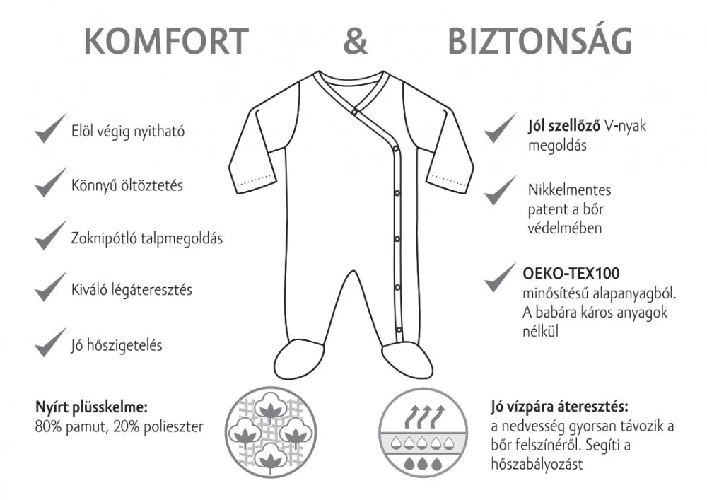 • OEKO-TEX minősítésű alapanyagból – a babára káros anyagok nélkül