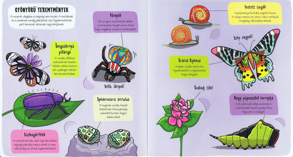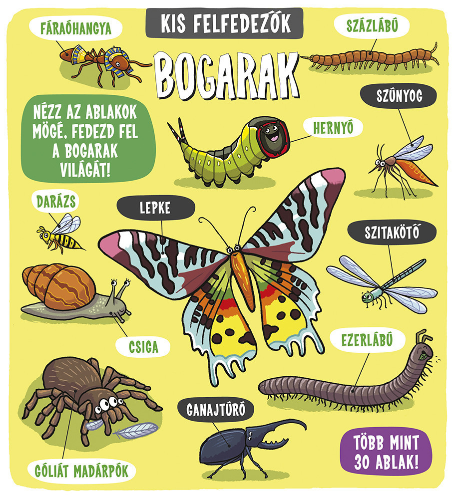 Gyertek, kis felfedezők! Nézzük meg alaposabban a legtekergősebb, legmászósabb, legijesztőbb és leggyönyörűbb rovarokat! Az ablakok alatt még több érdekes információt találhatsz a bogarakról. Rengeteg felfedeznivaló vár!
