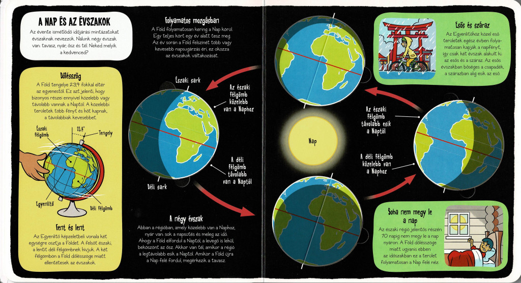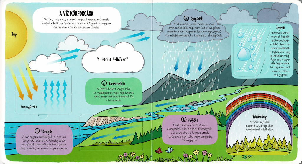 A könyvben a kis olvasók megismerhetik, hogyan alakul ki a napsütés, az eső, a szél vagy akár a hó, és megtudhatják, miért változnak az évszakok. Az illusztrációk segítségével könnyen érthetővé válik a klíma és a légköri jelenségek működése, miközben az apró felfedezők interaktív ablakokat nyithatnak ki, hogy még több érdekességet találjanak.