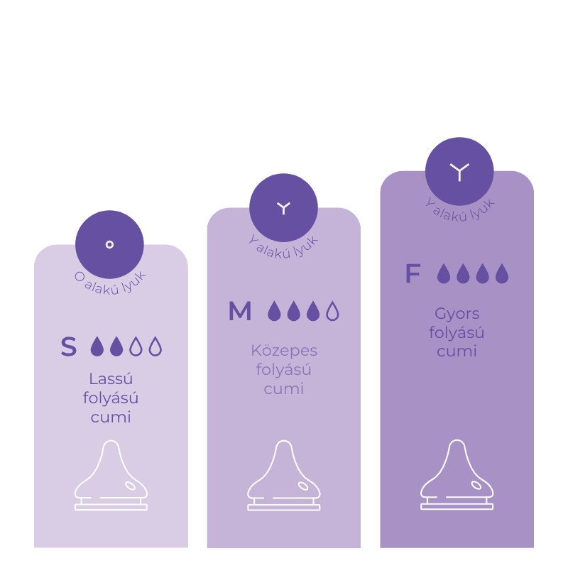 • Etetőcumi nyílása a baba szívására nyílik meg.