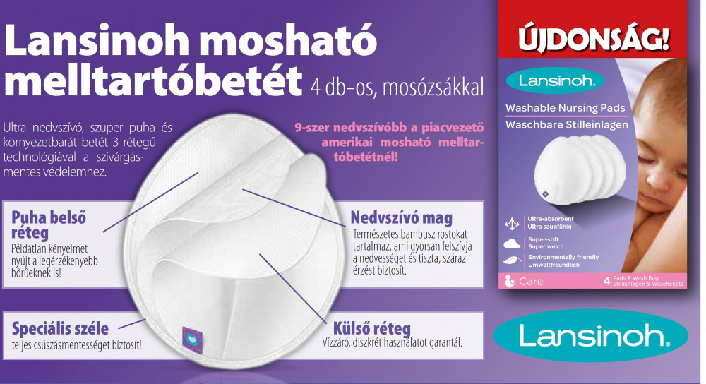 Lansinoh mosható melltartóbetét 4 db-os, mosózsákkal