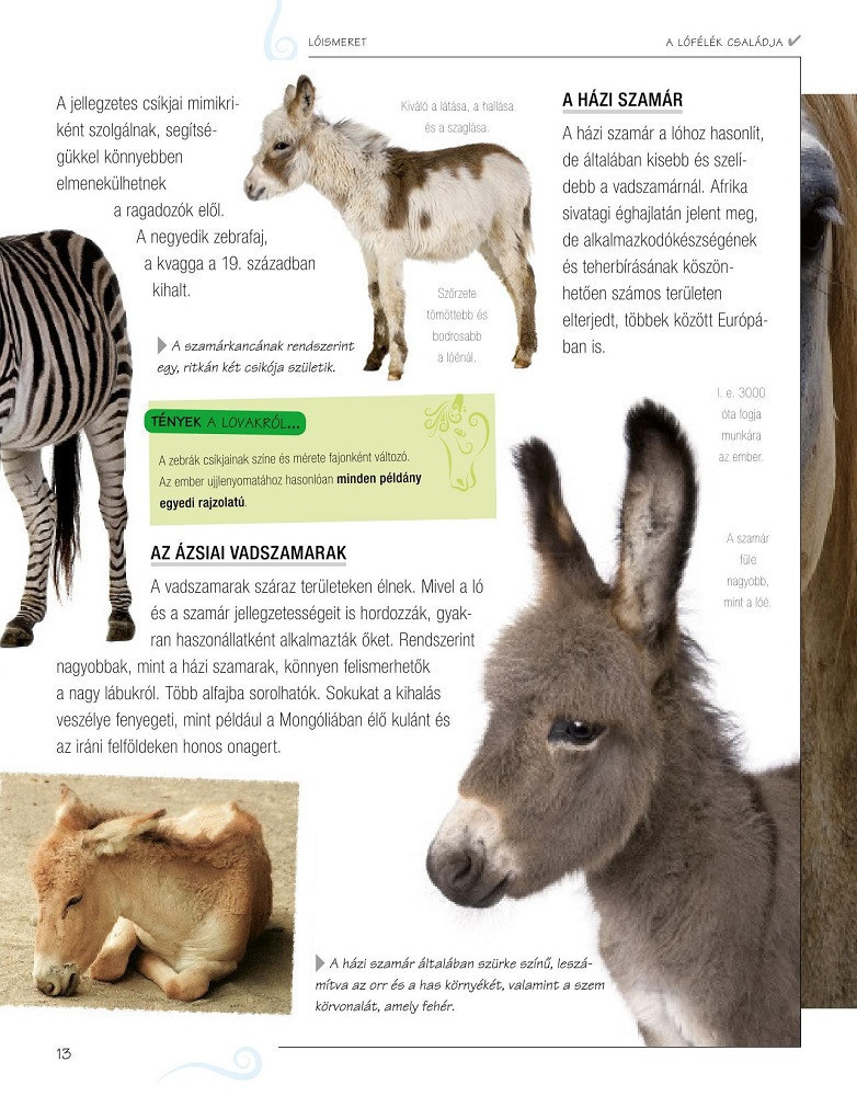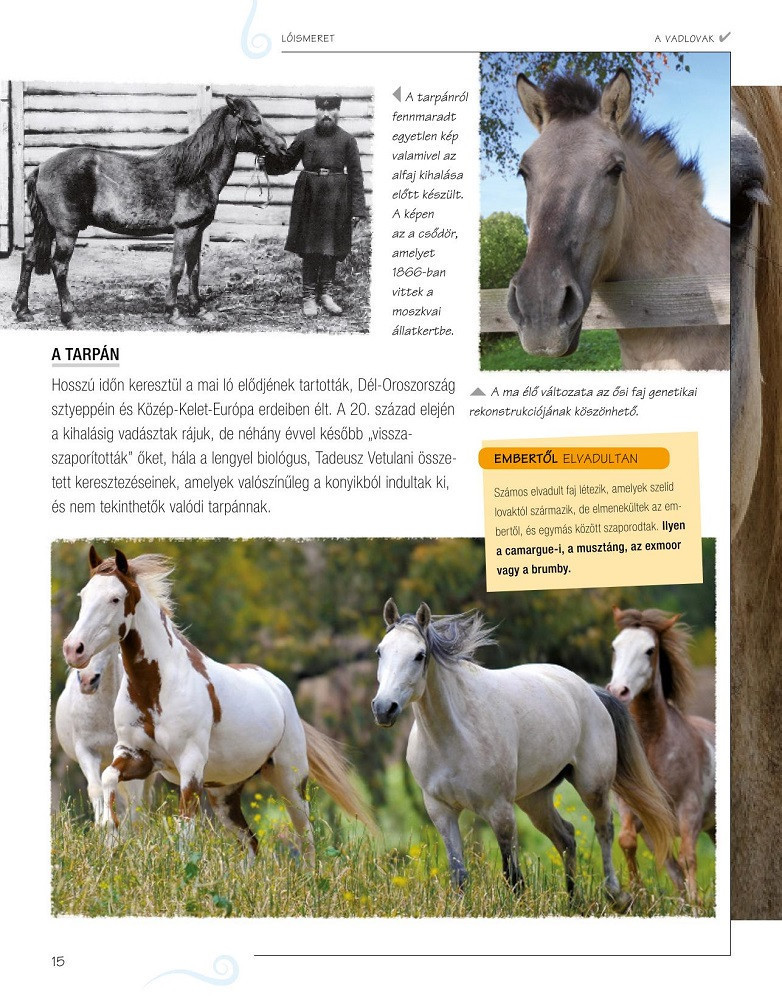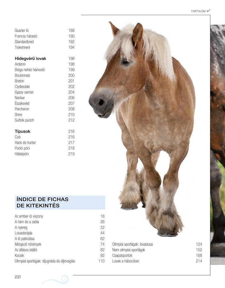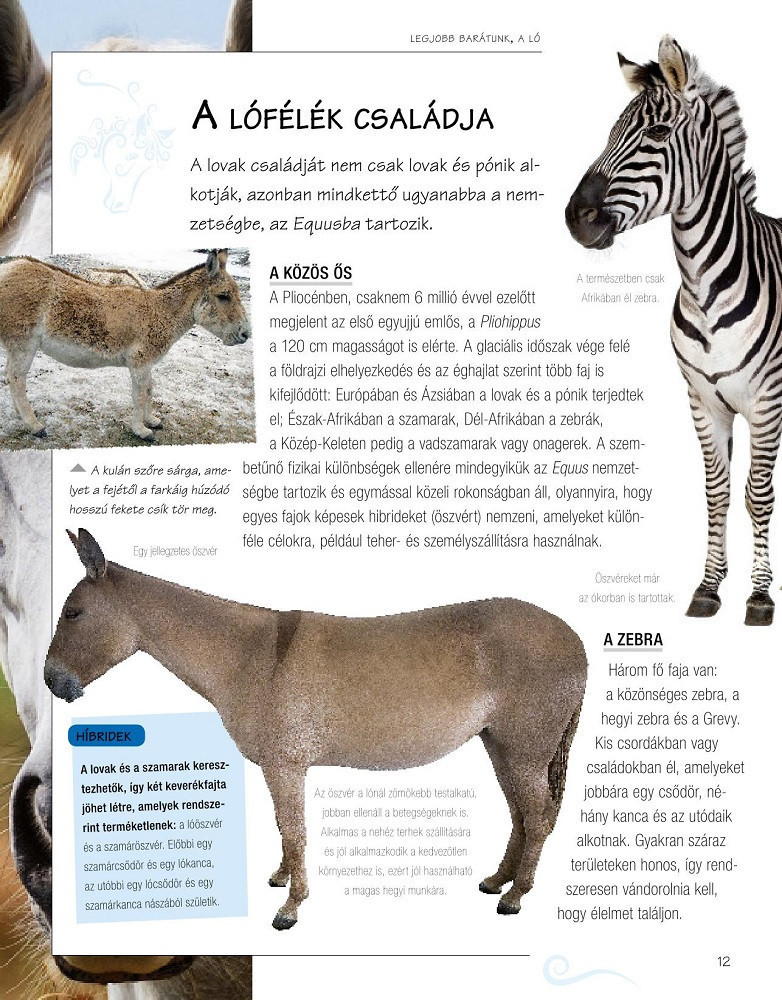 Ki ne szeretné a lovakat? Évezredek óta társaink a mindennapokban, megosztjuk velük örömünket és bánatunkat, hű társaink. Ez a könyv segítségünkre lehet abban, hogy jobban megismerjük kedvenceinket, hiszen részletes információkat nyújt a gondozásukról, etetésükről, kiképzésükről és egészségükről, valamint leírást ad a legtöbb elismert fajtáról. Számos fénykép segít, hogy felismerjük az egyes lófajtákat, és abban is, hogy a hétköznapi lógondozáson kívül betekintést nyerjünk a ló- és a lovassportok mindenféle szakágába. Így könnyebben el tudjuk dönteni, hogy milyen szabadidős elfoglaltságot válasszunk magunknak vagy a gyermekünknek a lóval.