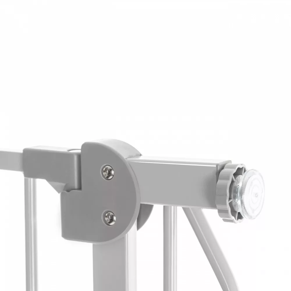 A kiváló minőségű, minden irányba nyitható és állítható ajtórács megakadályozza, hogy gyermeked leessen a lépcsőn vagy olyan helyre menjen, ahova nem lenne szabad neki. Arra figyelj, ha a kaput 90 fokig nyitod ki, az ajtó nem záródik vissza magától!