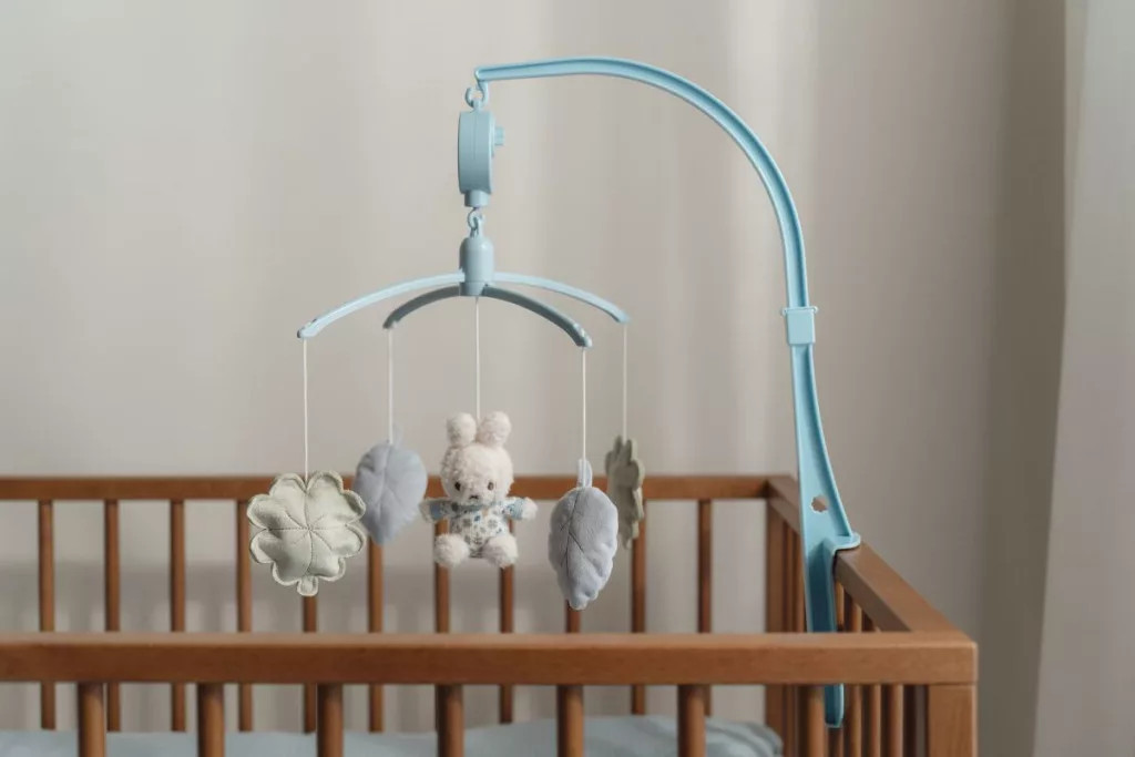 Ez a gyönyörű, pasztell árnyalatokban tündöklő zenélő körforgó nemcsak dísze a babaszobának, hanem megnyugtató altatótárs is.