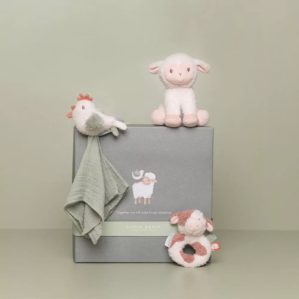 Ez a gyönyörűen összeállított ajándékdoboz a Little Farm kollekció csodás világát hozza el a legkisebbeknek. A dobozban egy puha plüss, egy ölelgetni való rongyika és egy rágóka lapul.
