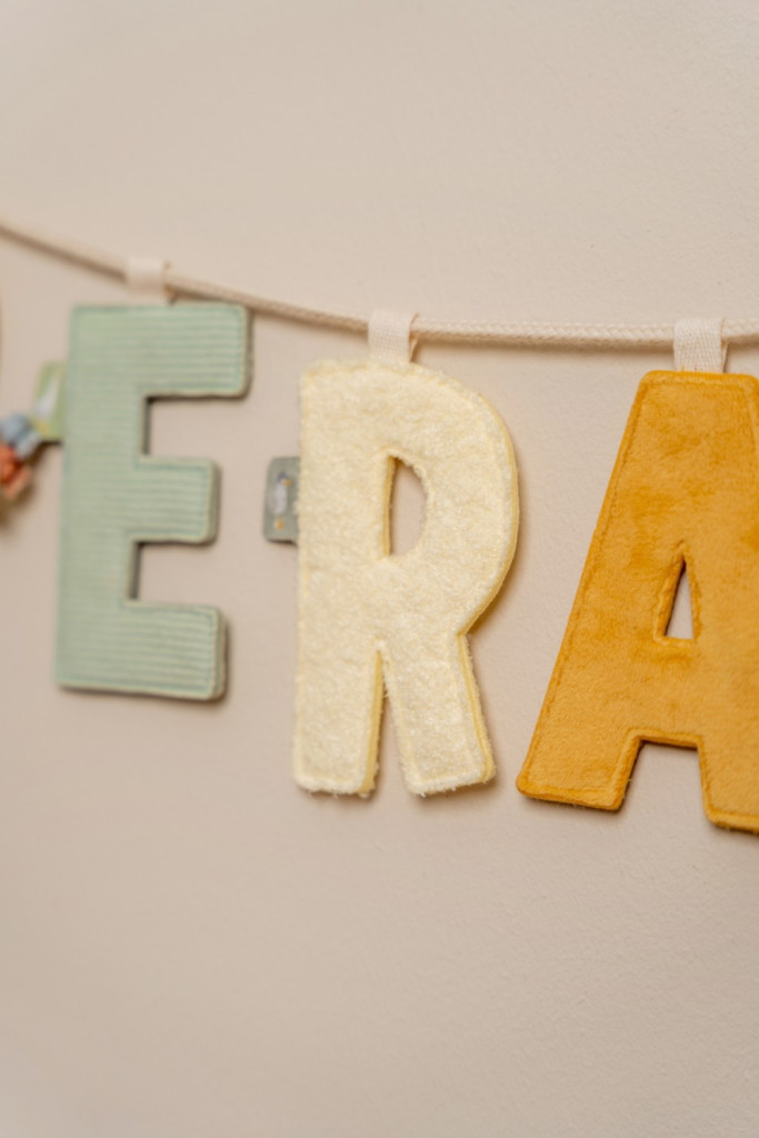 Ez a puha, felfűzhető textil betű a Little Dutchtől tökéletes kezdete lehet egy különleges névnek vagy szónak a gyerekszobában! Akaszd fel a kiságyra, a falra vagy akár gyerkőcöd ajtajára.
