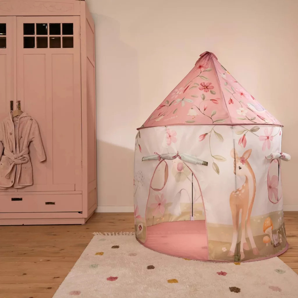 Egy varázslatos kuckó a legszebb játékokhoz! Ez a meseszép, pasztellszínekben pompázó sátor nemcsak stílusos, hanem tökéletes helye a kuckózásnak, olvasásnak, szerepjátéknak – vagy egyszerűen egy kis nyugalomnak.