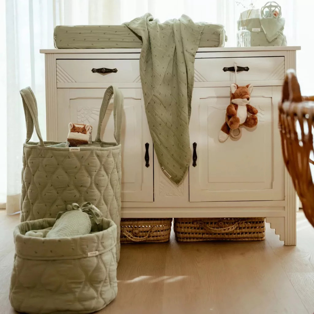 A Little Dutch bájos tárolókosara nemcsak rendszerez, hanem díszíti is a gyerekszobát. A 100% organikus pamut külső gyengéd a baba környezetéhez, míg a praktikus, megfordítható kialakításnak köszönhetően kétféle megjelenést is választhatsz.