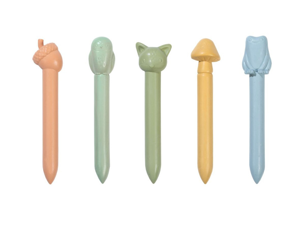 • Készlet tartalma: 5 különböző színű zsírkréta, egyedi figurákkal a tetején