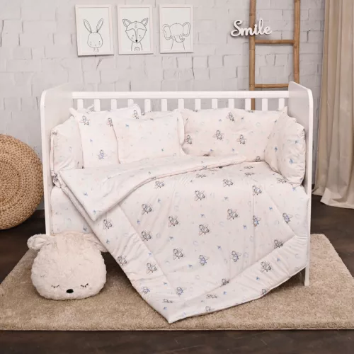 Az 5 részes ágynemű garnitúra 360 fokos rácsvédővel vásárolható meg, a baba számára tökéletes alvóhely alakítható ki.
