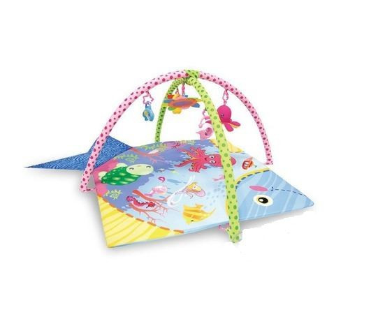 A matracon háton fekve nézegetheti, megfogja, húzhatja, forgathatja a kis lelógó játékokat, ez nem csak leköti figyelmét, de fejleszti motorikus képességeit, illetve szem- és kéz koordinációját.