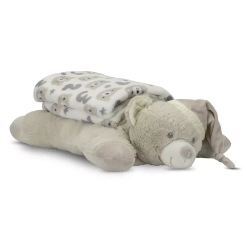 Lorelli Poffy Duo takaró 75x90 cm párnával 45x30 cm - White BeigeTeddy Bear