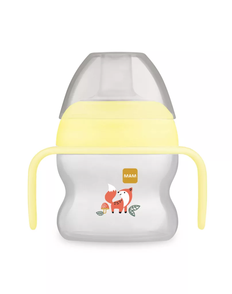 A MAM formatervezői fejlesztőpedagógusokkal együttműködve kifejlesztették az ideális első ivópoharat, amely teljes mértékben alkalmazkodik a legkisebbek szükségleteihez.