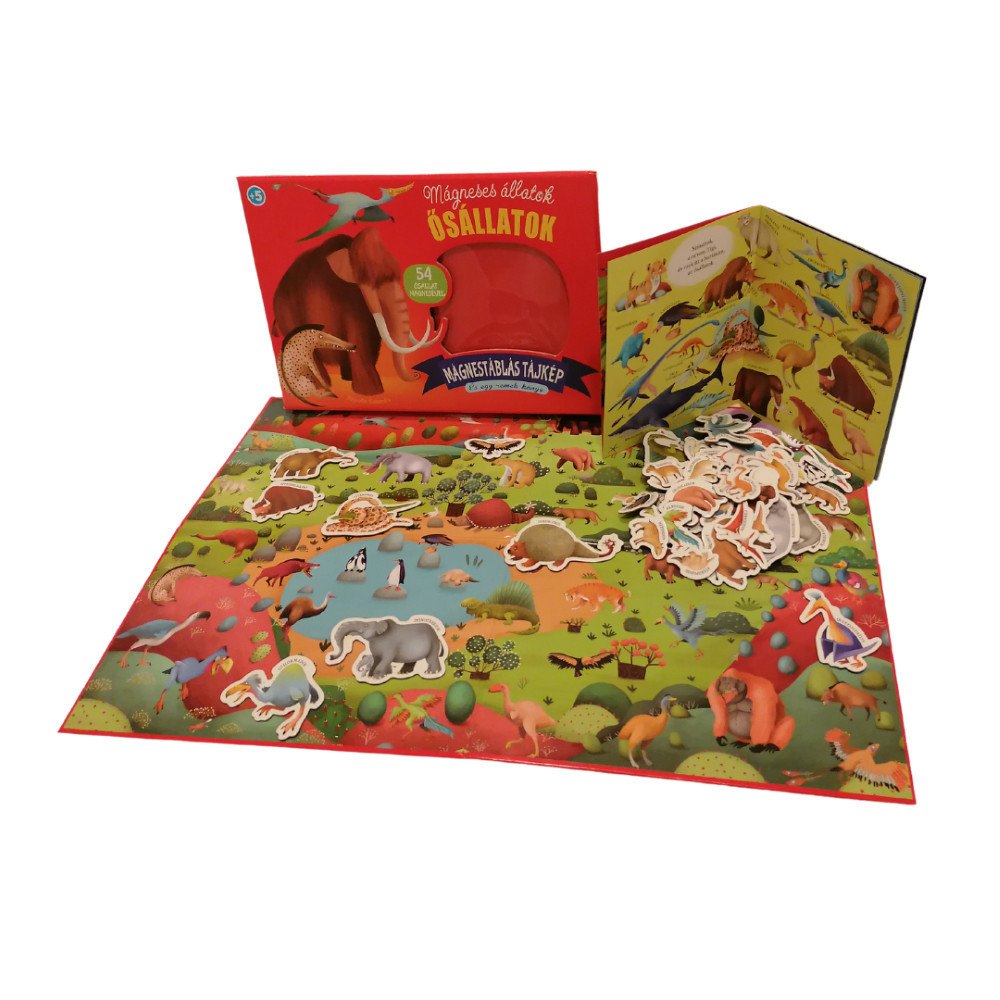 A mágneses figurák segítségével a gyerekek felfedezhetik, hol éltek ezek az állatok, mit ettek, és hogyan töltötték mindennapjaikat. A mágnestáblán elhelyezett állatok újra életre keltik az őskori világot, így a gyerekek játék közben tanulhatnak. A mellékelt könyv színes illusztrációkkal és érdekes információkkal segíti a tanulási folyamatot, bemutatva az őskor élővilágát és annak különlegességeit.
