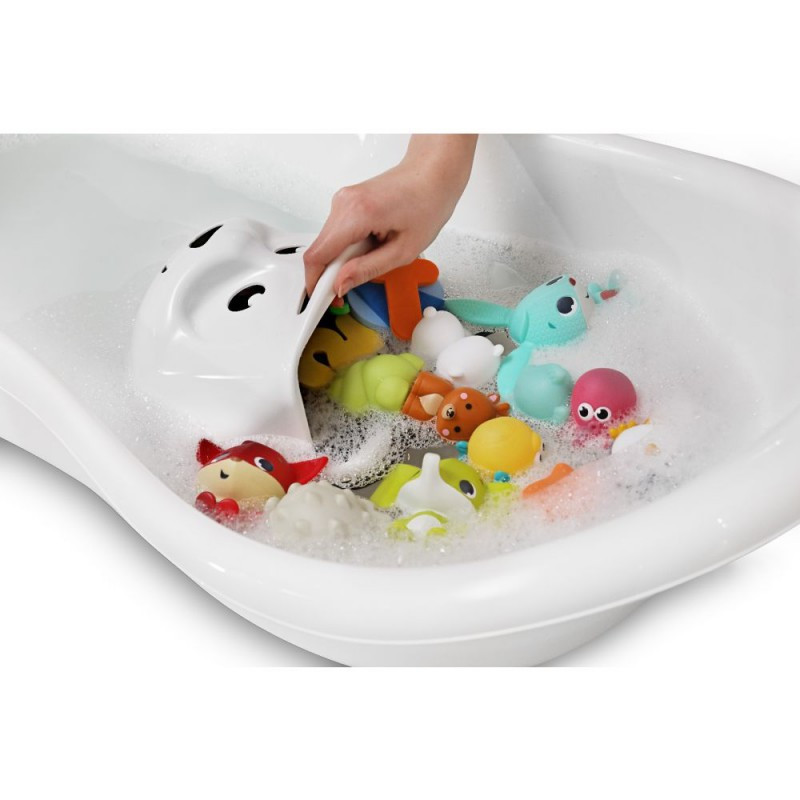 Ez a cuki panda egy praktikus segítő a játékok rendszerezésében. A játéktartó felakasztható a fürdőszobában a tapadókorongok segítségével közvetlenül a kádra vagy a zuhanyzóban. Ugyanakkor tiplik segítségével gyermeked szobájának szuper kiegészítője is lehet.
