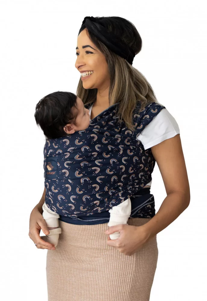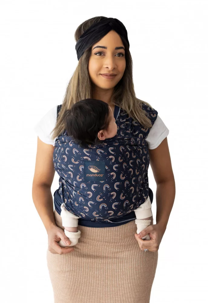 A legújabb Rainbow mintás Manduca Sling babahordozó rugalmas kendő újszülött kortól, egyszerű megkötési mód, jó tartás, a kezdetektől!