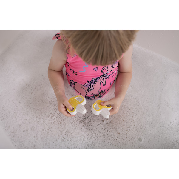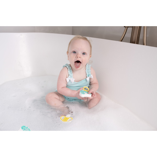 Pliccs-placcs! Ez a szórakoztató fürdős játékkészlet 2 süllyedő és lebegő játékot tartalmaz. A banánok és levelek vagy elsüllyednek vagy lebegnek, ez akkor derül ki, amikor a vízbe dobja őket gyermeked, így megtanulhatja, hogy a tárgyaknak más-más súlya van. Próbáljátok meg elkapni a játékot mielőtt elsüllyed – ez nemcsak jó móka, de segíti a kéz-szem koordináció fejlődését.