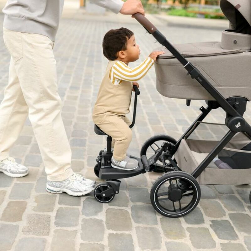 Maxi-Cosi Hop-On Board – amikor a nagytesó is szeretne „felszállni”. A Hop-On Board testvérfellépő ülőkével tökéletes megoldás a sétákhoz, amikor a nagyobb gyermek néha sétálna, néha viszont inkább pihenne egy kicsit. A tágas, csúszásmentes platformon biztonságosan állhat, a három fokozatban állítható ülőkén pedig kényelmesen utazhat – mindig úgy, ahogy épp jól esik.