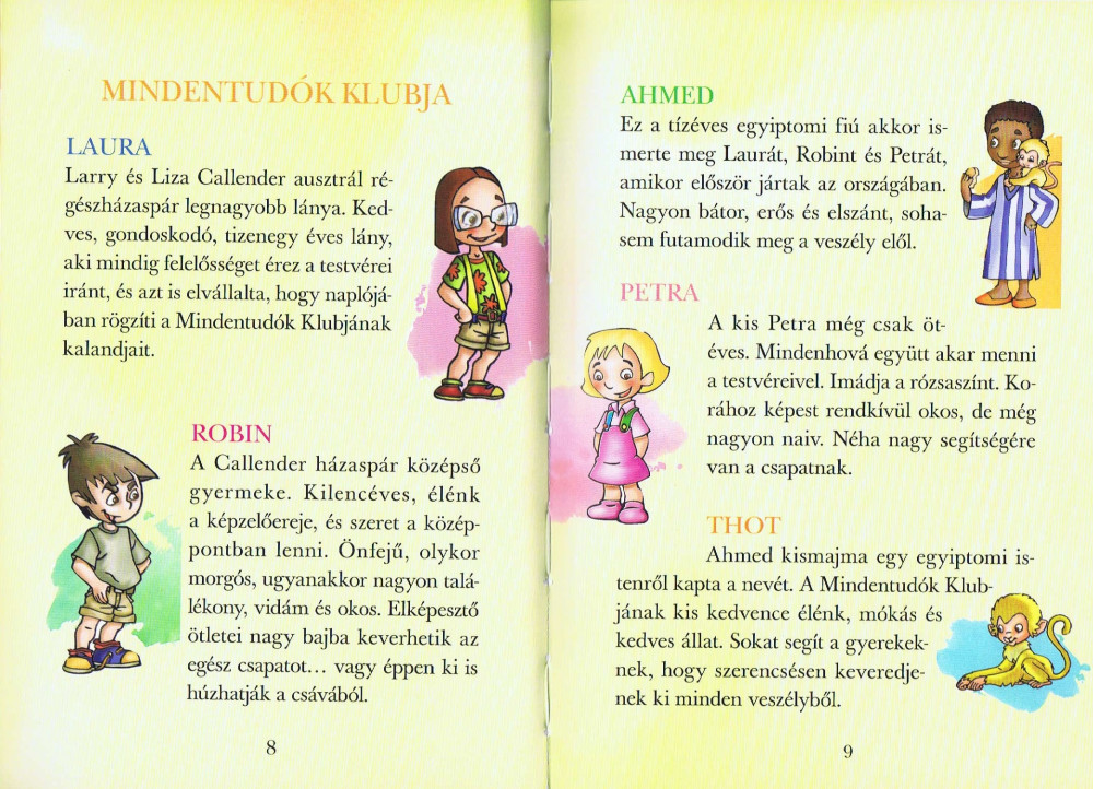 Mi történik, ha egy régészházaspár meghívást kap egy ásatásra? Természetesen viszik magukkal a gyerekeiket is! Igen ám, de mihez kezd magával három kisgyerek Egyiptomban vagy éppen Párizsban? Természetesen rejtélyek után kutatnak! Egy törött amulett nyomában elindulva a gyerekek felgöngyölítenek egy ősi rejtélyt, és még új barátokra is találnak… Innen már csak egy lépés, hogy megalakítsák a Mindentudók Klubját!