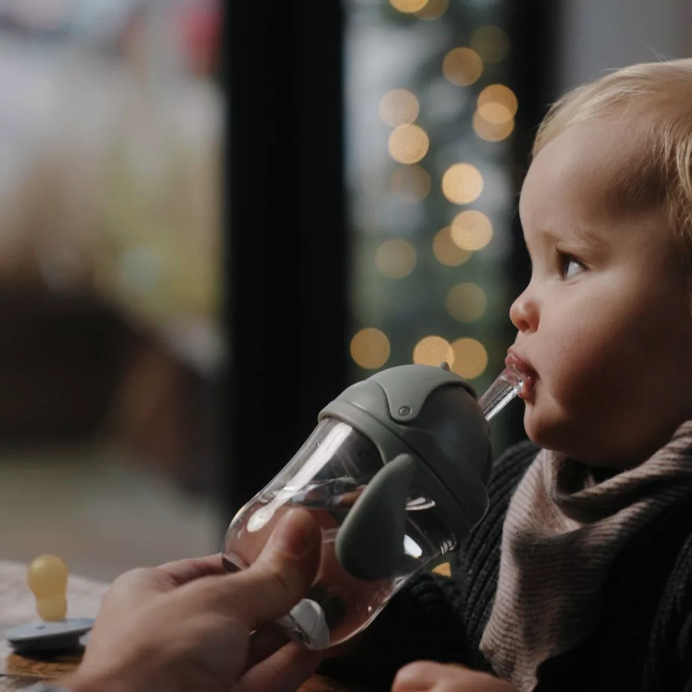 Ez a cseppmentes szívószálas itatópohár tökéletes utazáshoz és mindennapi használatra. A puha szilikon szívószál alján található nehéz golyó lehetővé teszi, hogy a kulacsot akár fejjel lefelé is használhassuk – a gravitáció a folyadékhoz vezeti a golyót. Főbb jellemzők: - Anyag: Tritan® - BPA-mentes, tartós és ütésálló, szag- és foltálló, tiszta, üvegszerű megjelenés - Szívószál: Variálható folyású, puha szilikon szívószál nehéz golyóval - Kényelmes használat: Könnyen nyitható tető és puha, rugalmas fogantyúk - Higiénia: Minden alkatrész mosogatógépben (felső polc) tisztítható; a szívószál és tető a felfőzésnek is ellenáll; a pohár UV sterilizálható Figyelmeztetés: Mikrohullámú sütőbe nem tehető (a golyó fémet tartalmaz), max. 70°C Űrtartalom: 330 ml Szín: orgona Ez az itatópohár praktikus, biztonságos és stílusos választás, ami megkönnyíti a folyadékfogyasztást bárhol, akár útközben is.