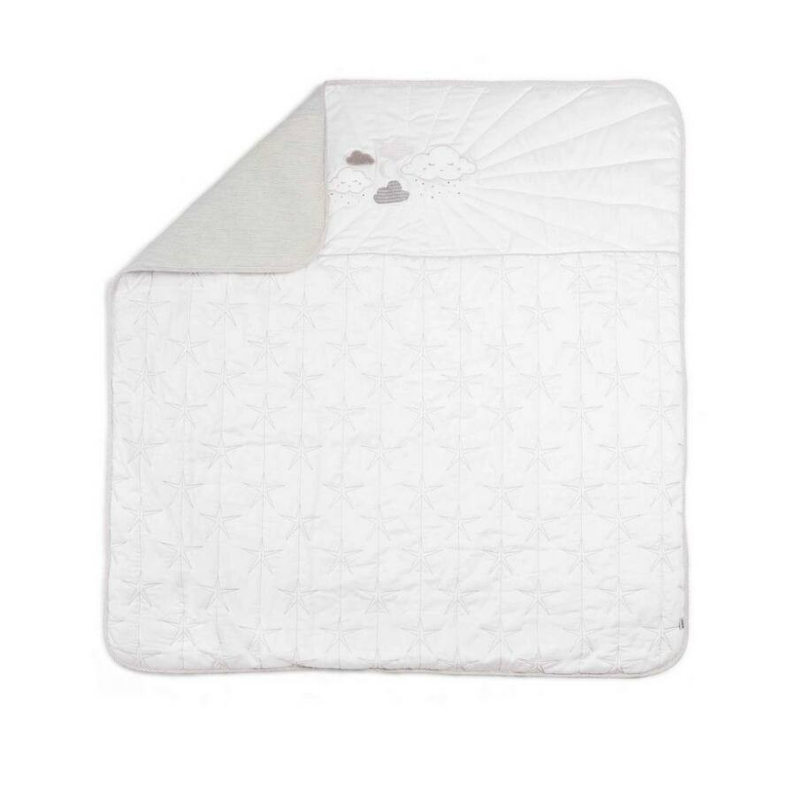 A Mamas & Papas Dream Upon a Cloud kollekcióját a finom tónusok mellett némi napsütés is jellemzi, hiszen a fehér és szürke árnyalatokat helyenként élénk sárga színek dobják fel. A szuperpuha enteriőrök különböző mintájú és textúrájú anyagokból készültek, amiket csöppséged garantáltan imádni fog. Jellemzői: - Puha, 2.5 Tog vastagságú takaró - Kényelmesen bekuckózhat vele nagyobb gyermeked - Hold, felhők és csillagok díszítik - Hímzett karakterek, steppelt dizájn - Ajánljuk: 12 hónapos kortól - Méretei: Szé: 110 x Ho: 120 cm, 0.88 kg - Anyagösszetétel: Elöl: 70% viszkóz, 30% pamut, hátul: 100% pamut, töltet: 100% poliészter - Tisztítása: 40 fokon mosható