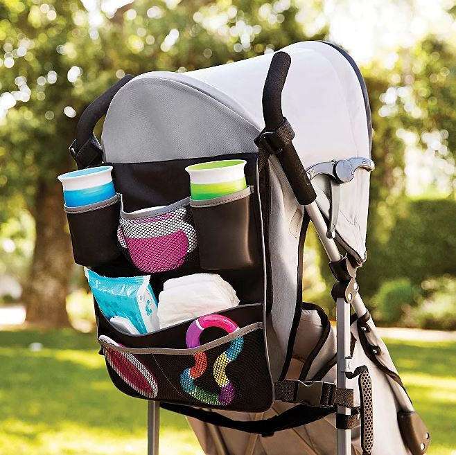 Praktikus, 2:1-ben Munchkin termék, amibe belepakolhatjuk az utazás közben használt csecsebecséket. A babakocsi hátuljára is feltehető. Többféle méretű hálós fakkal és cumisüvegtartóval felszerelt, hogy minden a helyére kerüljön.