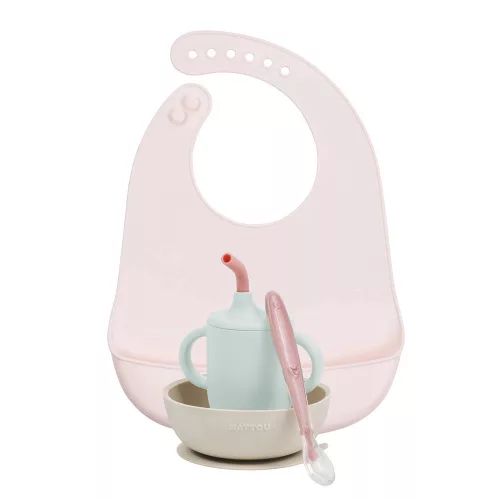 Nattou szilikon étkészlet 4 részes ivópohárral - pink