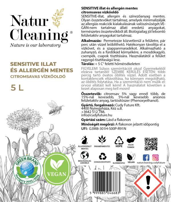 NaturCleaning Sensitive illat és allergén mentes citromsavas vízkőoldó 5 liter