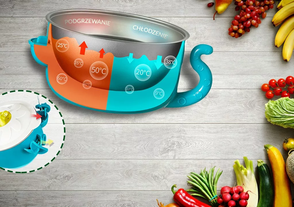• Ezt könnyedén meg tudod tenni a Neno Mucca táljánál, egyszerűen csak öntsd a vizet a tartályba, annak megfelelően, hogy melegíteni, vagy hűteni szeretnéd gyermeked ételét